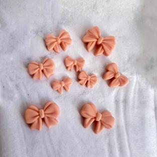 Фигурка из шоколадной глазури Бантики 1,5-2,5 см (9шт)120 руб.Состав: кондитерская глазурь (сахар, заменитель какао нетемперируемый лауринового типа (гидрогенезированное пальмоядровое масло, эмульгаторы: Е492, соевый лецитин), сухая мололочная сыворотка, носитель: карбонат кальция, эмульгатор лецитины: эмульгатор Е476, ароматизатор ванилин), красители (масло р...