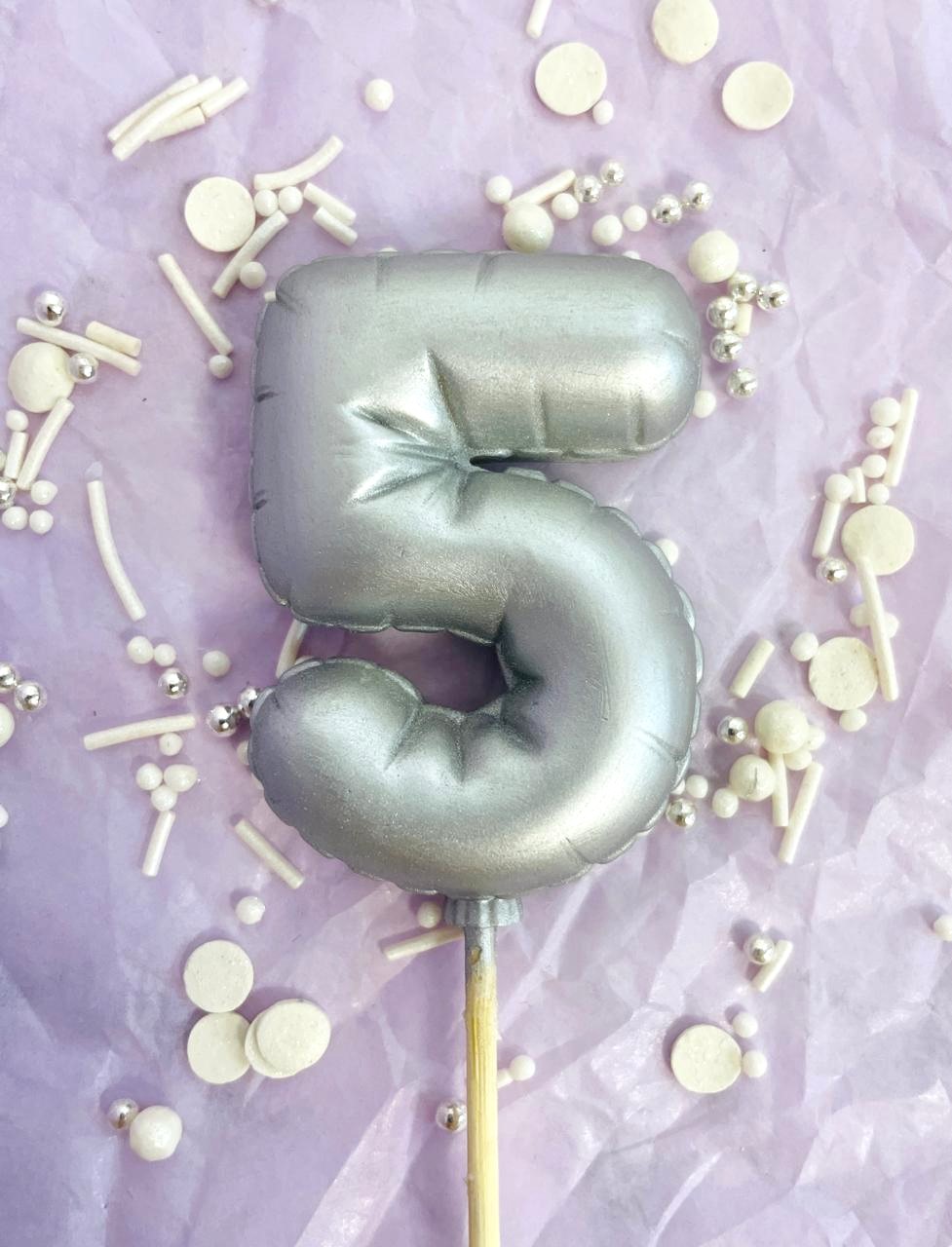 Фигурка из шоколадной глазури "Цифра-Шарик 5" серебро
