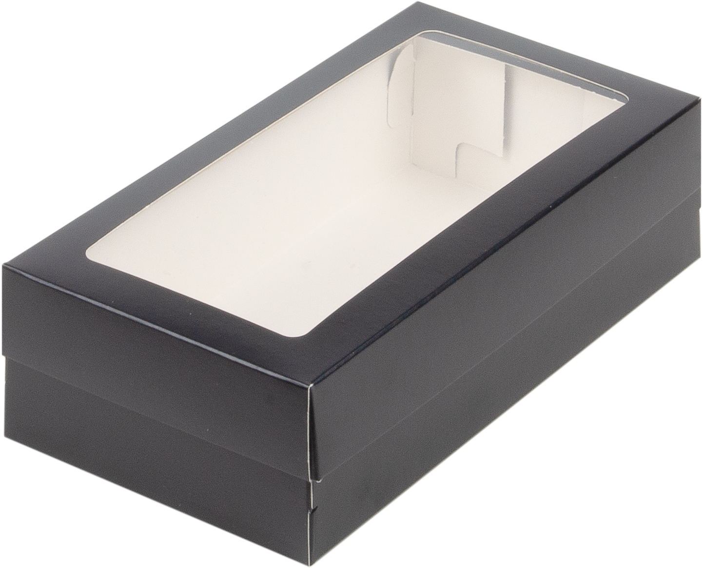 Коробка для кондитерской продукциис прямоугольным окном черная 21/11/55