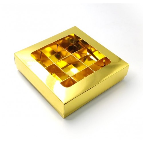 Коробка для конфет золото с окном 16 см*16 см*3 см (9)