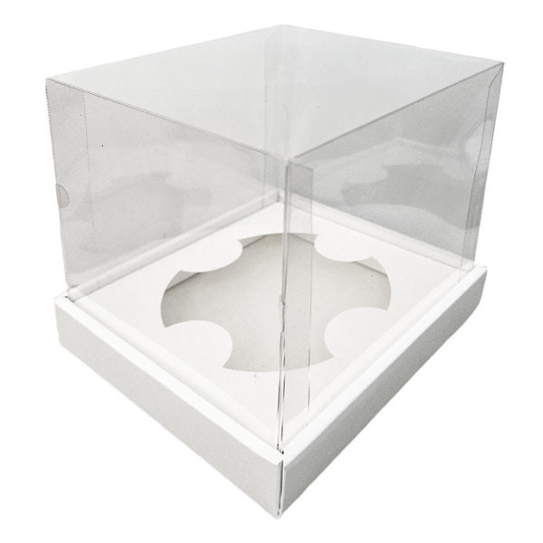 Коробка для кулича 16х16х20 см белая с прозрачным куполом
