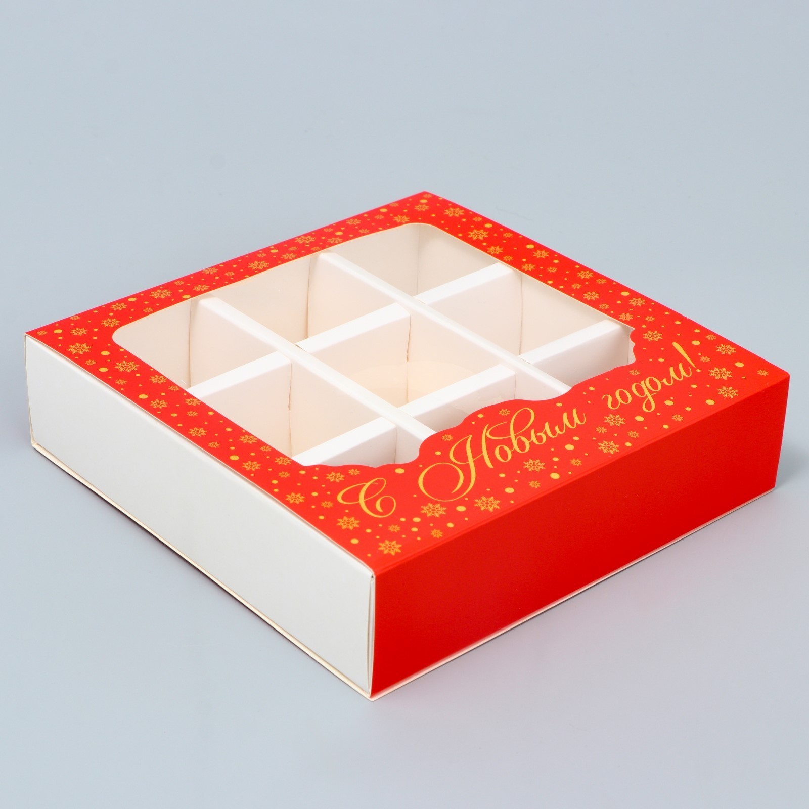 Коробка под 9 конфет с ячейками «Красивый новый год» 14.5 х 14.5 х 3.5 см