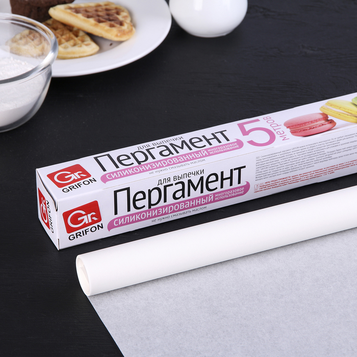 Пергамент для выпечки силиконизированный 38 см x 5 м Grifon, в футляре