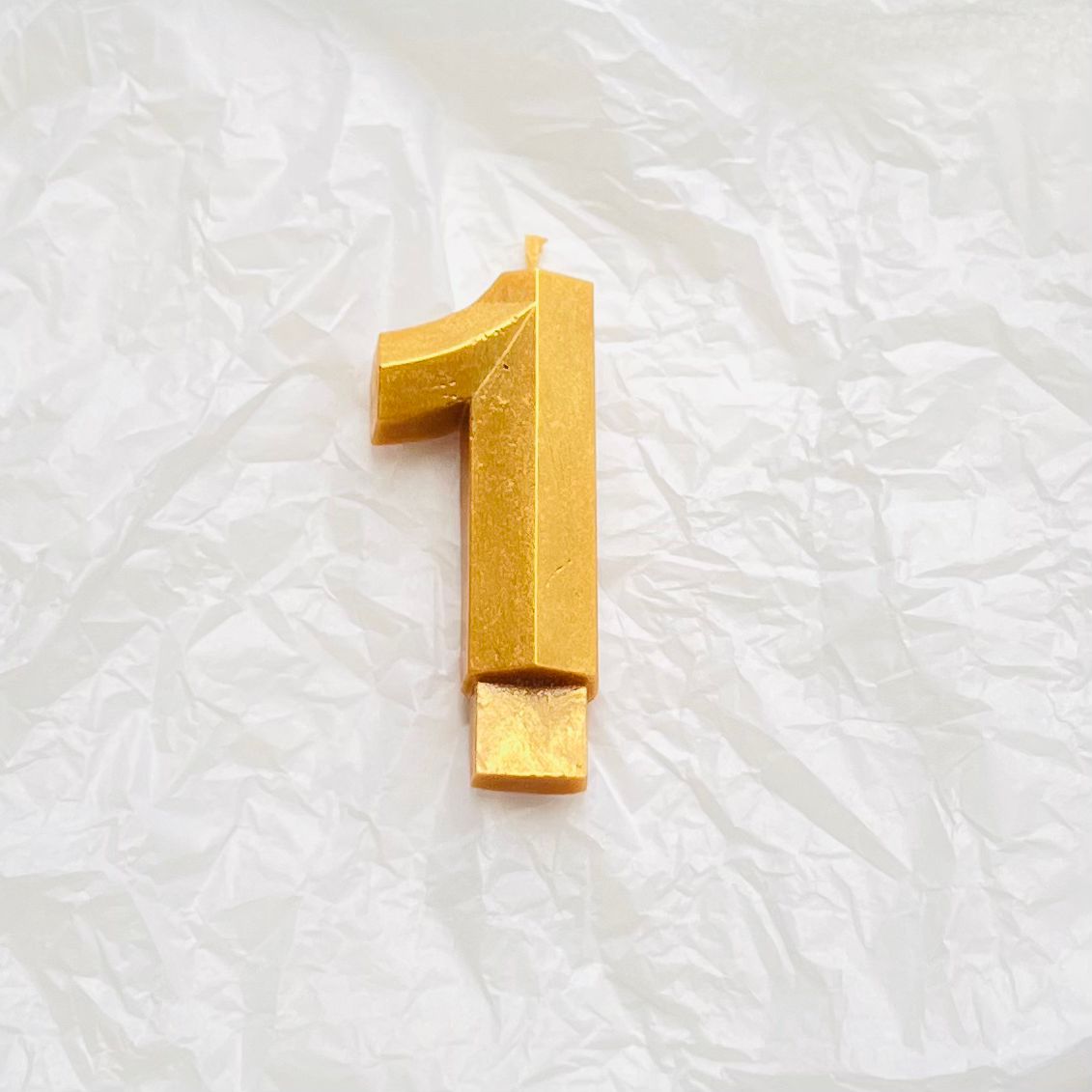 Свеча для торта восковая "Грани", "Цифра 1", золото