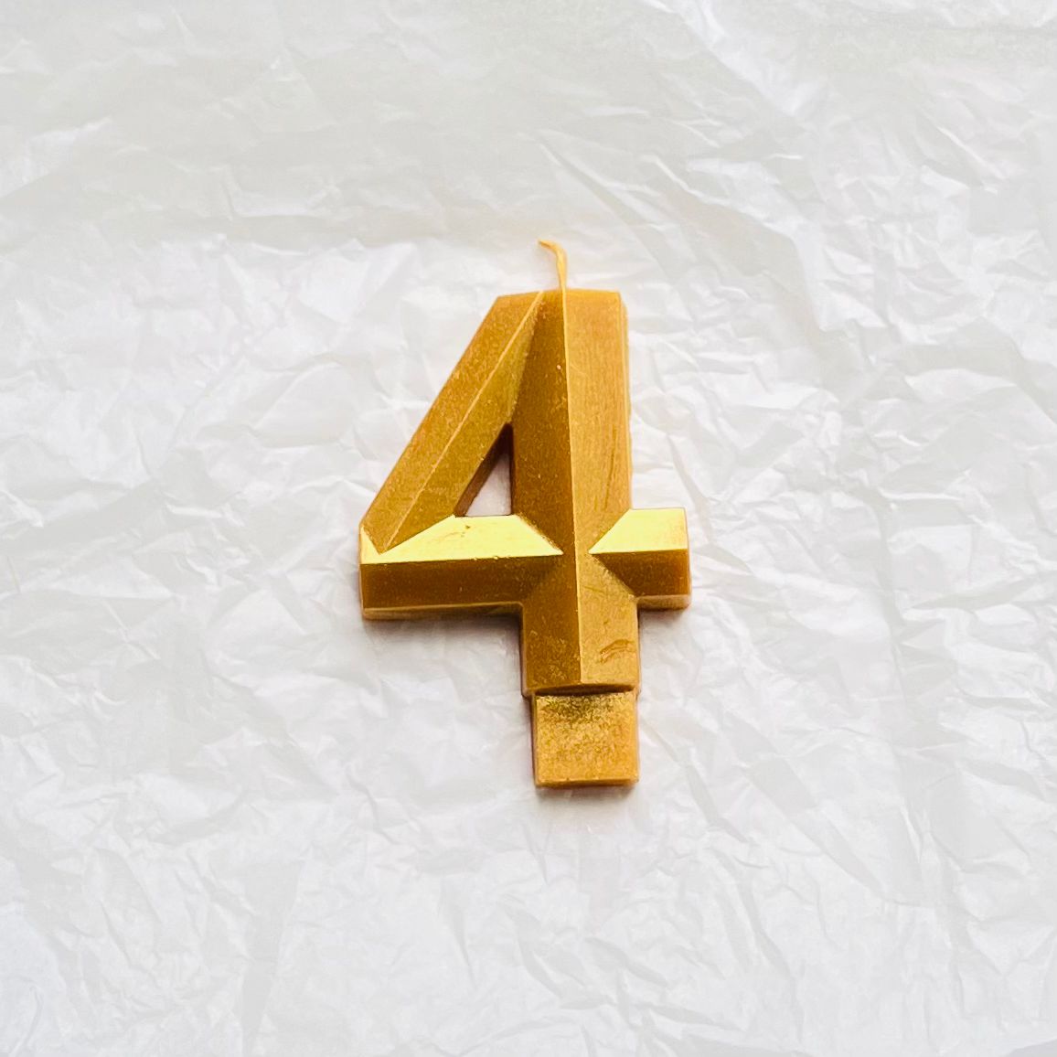 Свеча для торта восковая "Грани", "Цифра 4", золото