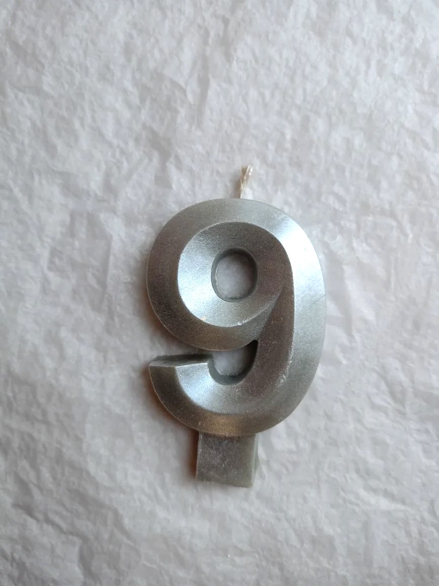 Свеча для торта восковая "Грани", "Цифра 9", серебро
