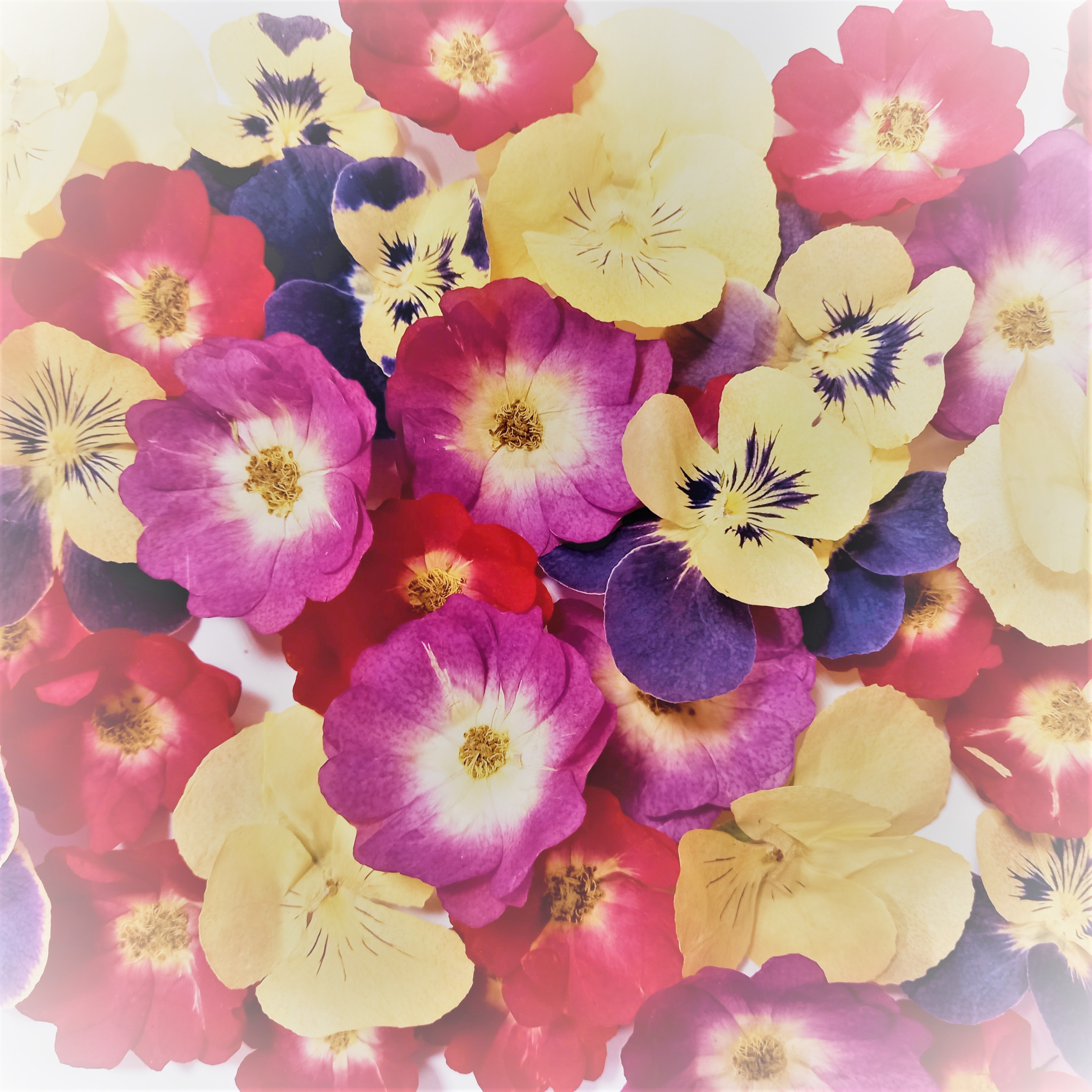 Цветы обезвоженные съедобные, микс виолы и розы, 10 шт