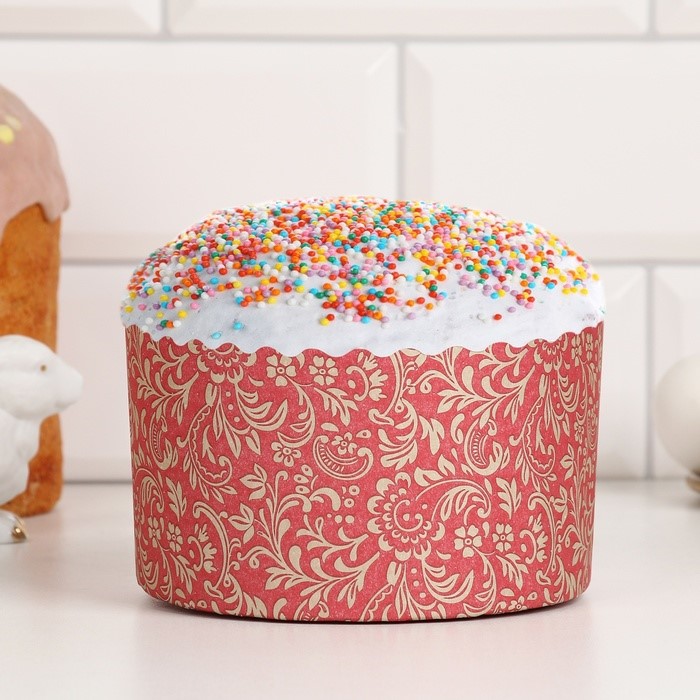 Форма бумажная для кулича d134, h90мм ФЛОРА КРАСНАЯ 500г