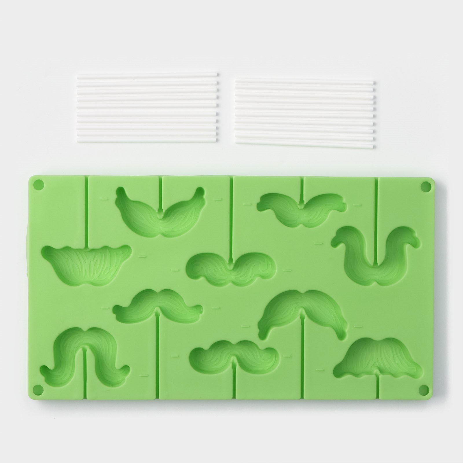 Форма для леденцов Доляна «Усы», силикон, 28,5×16×2 см, 10 ячеек (6,5×2 см), с палочками, цвет МИКС