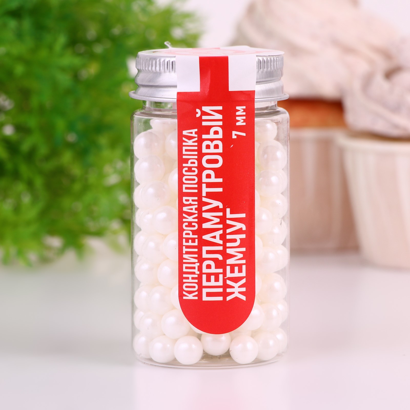 Кондитерская посыпка «Перламутровый жемчуг 7мм», белая, 50 г