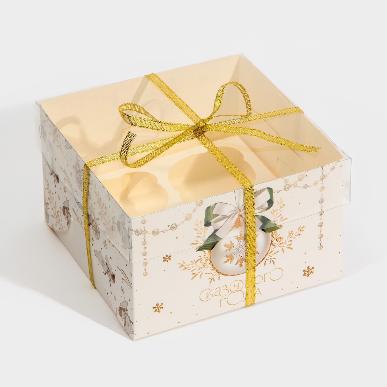 Коробка для 4 капкейков «Бело-золотой» 16 х 16 х 10см