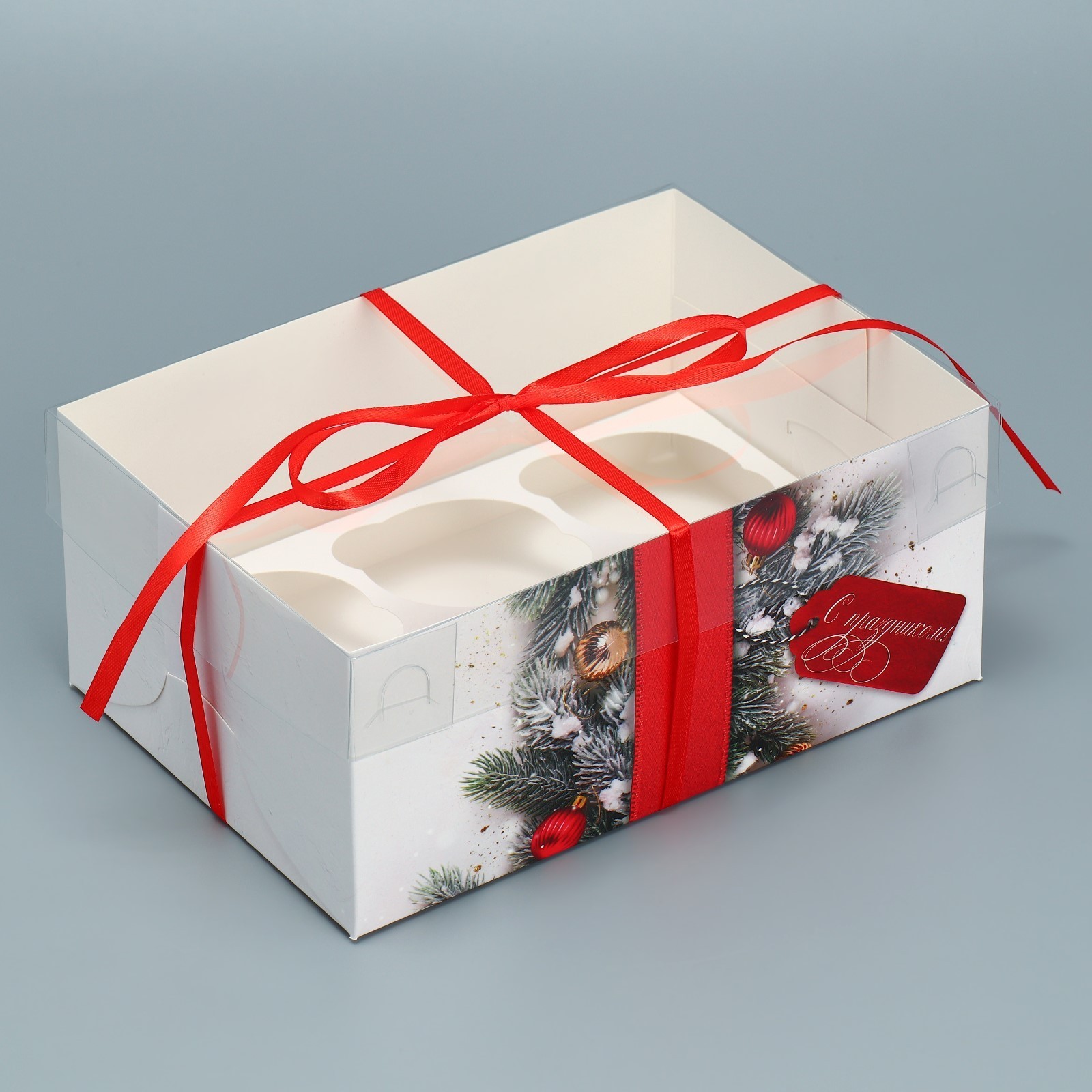 Коробка для 6 капкейков «С праздником!», 23 × 16 × 10 см