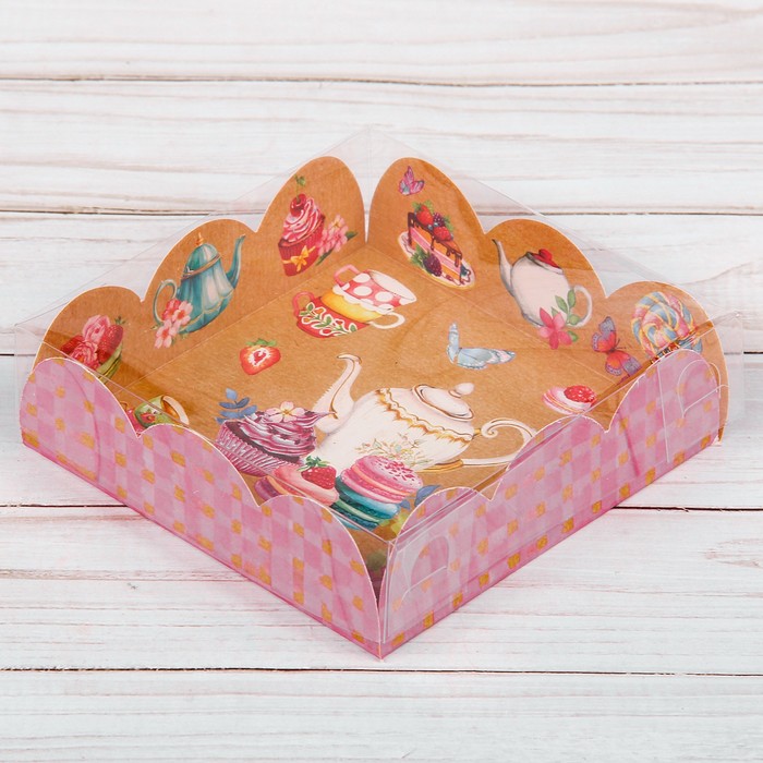 Коробка для кондитерских изделий с PVC-крышкой «Чаепитие», 10,5 × 10,5 × 3 см