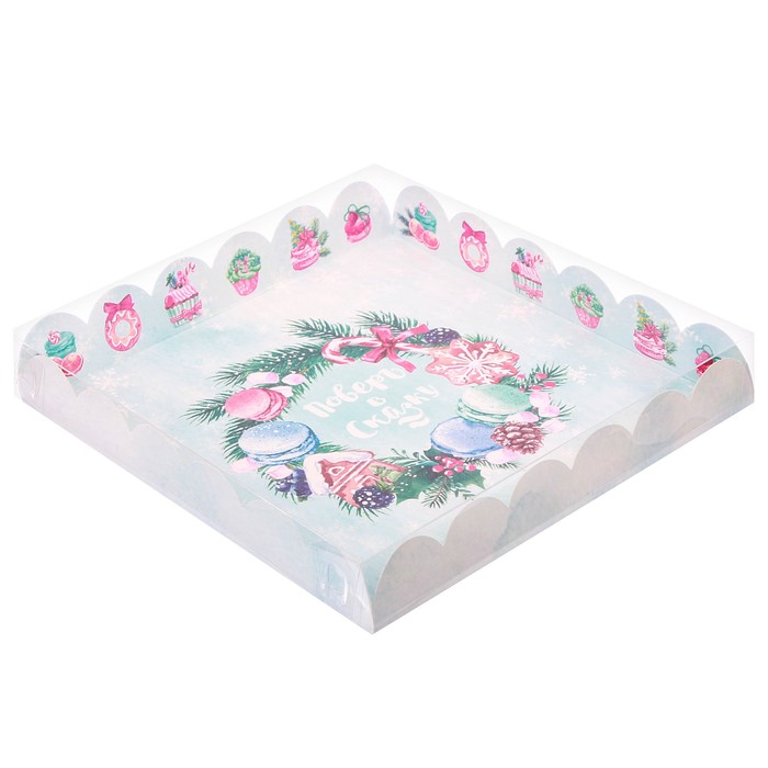 Коробка для кондитерских изделий с PVC крышкой «Поверь в сказку», 21 х 21 х 3 см