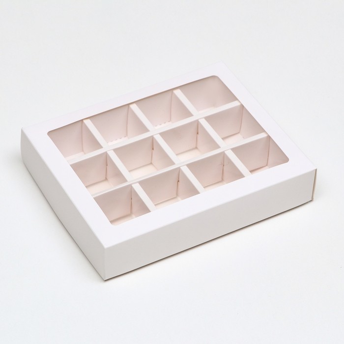 Коробка для конфет белая с окном 19*15*3,6см (12)