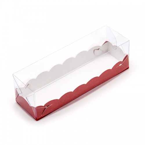 Коробка для макаронс на 6 шт 19 см*5,5 см*5,5 см красная с пластиковой крышкой