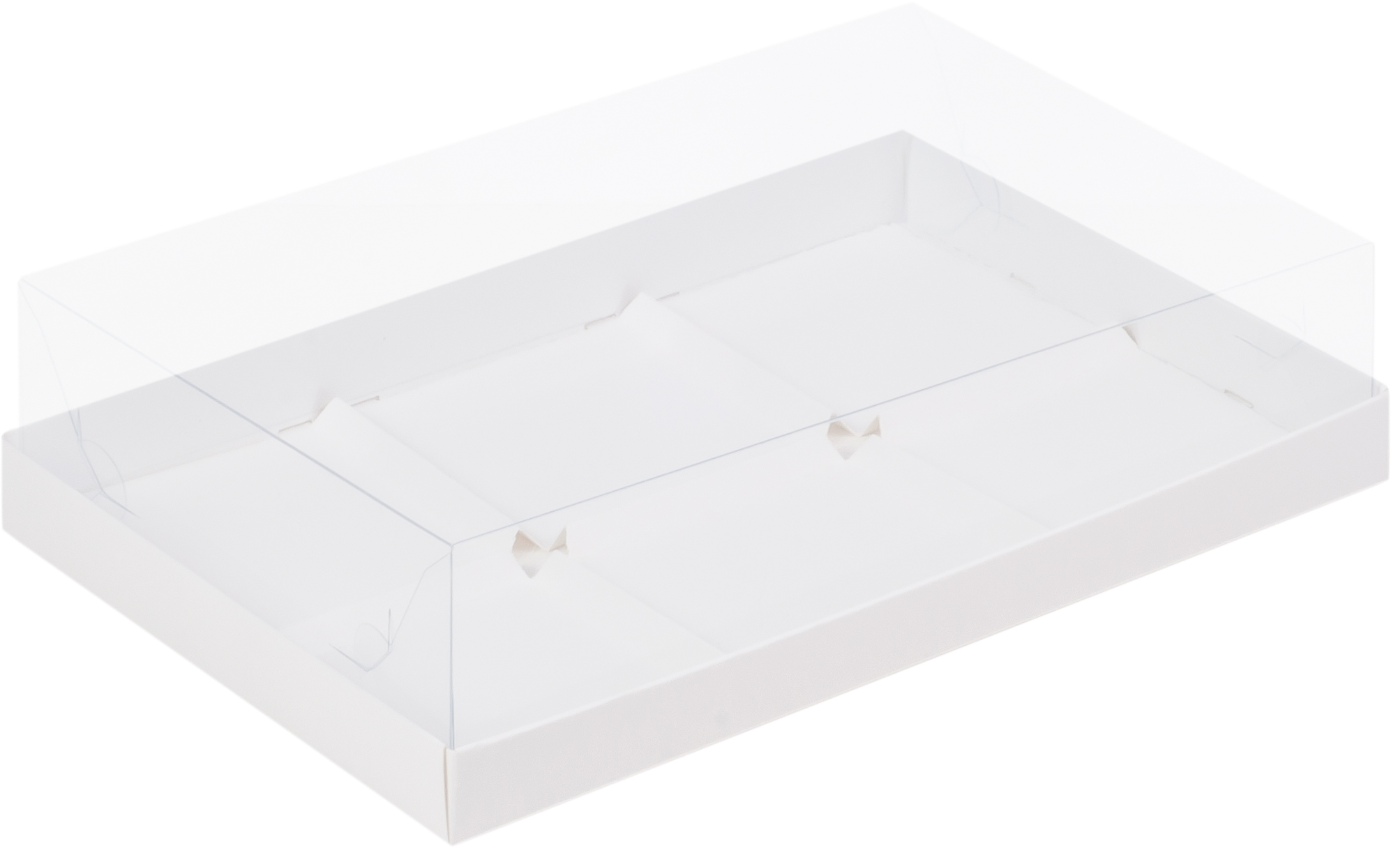 Коробка муссовые пирожные (кукис, cookies) (6), белая, 27,3*18,*6,5 см с пластиковой крышкой
