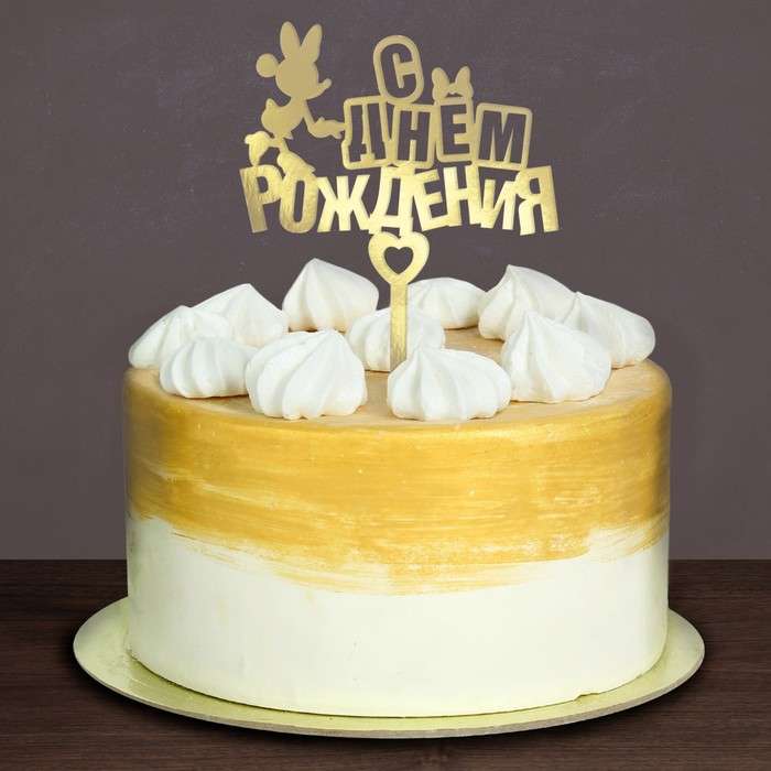 Набор для украшения торта "С Днем Рождения" Минни Маус (топпер золотой+ свечи)