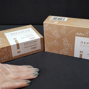 Перчатки винил бело-прозрачные 50 шт упаковка M