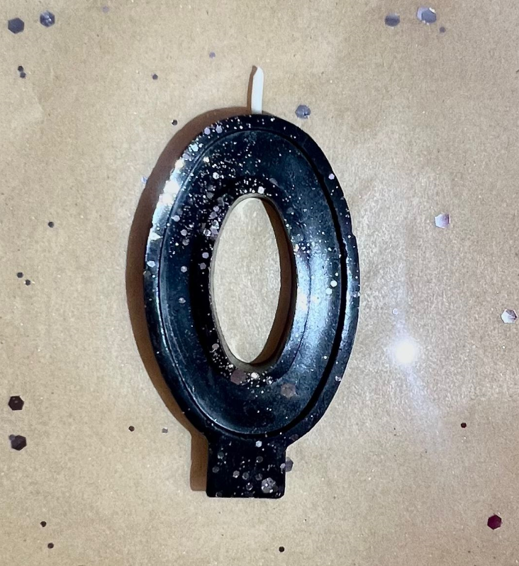 Свеча для торта восковая "Гламур", "Цифра 0" черная с серебром