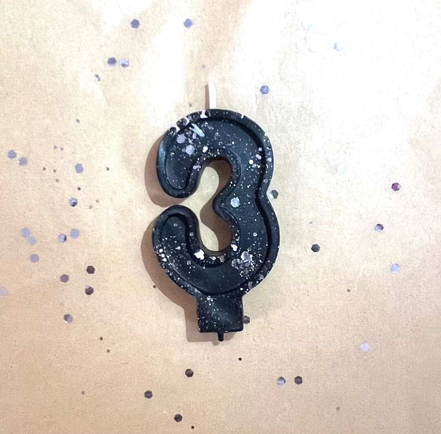 Свеча для торта восковая "Гламур", "Цифра 3" черная с серебром