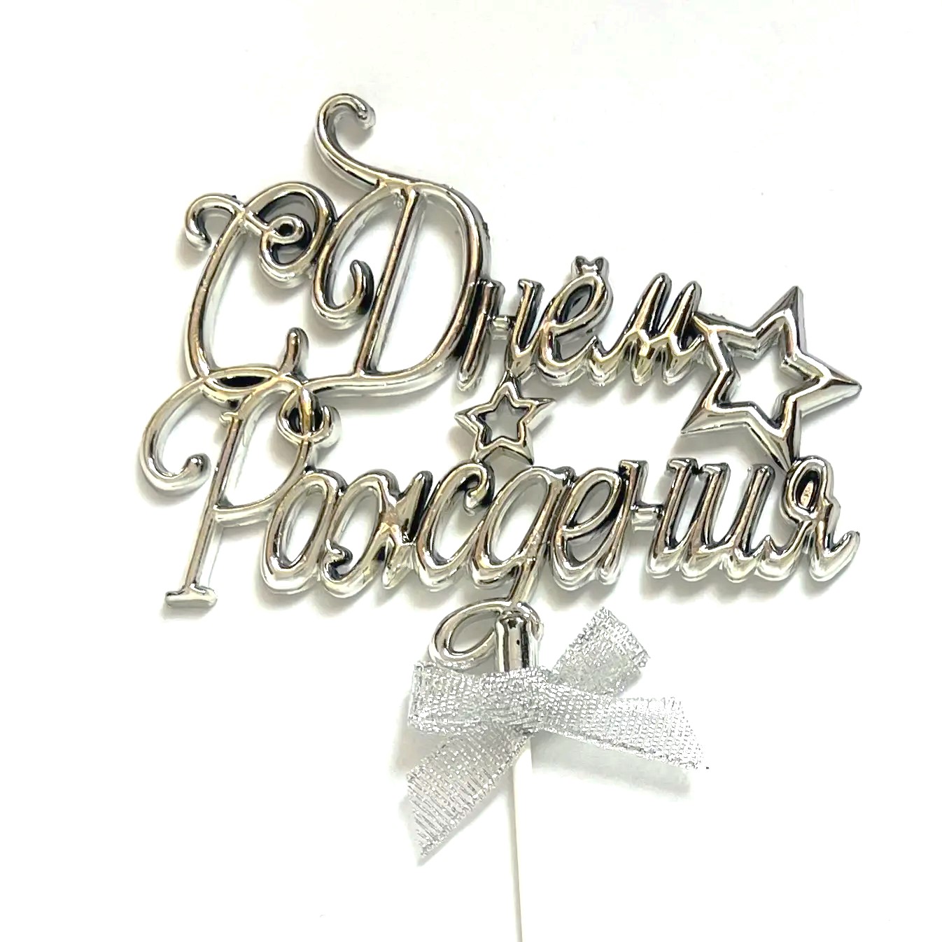 Топпер «С Днём Рождения» со звездой, серебро